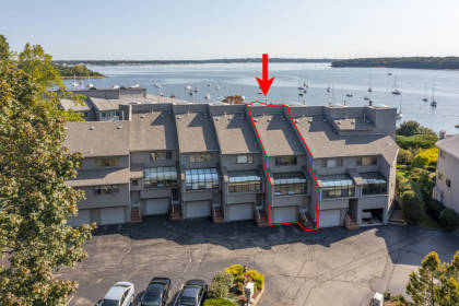 Welcome to the Moorings! East Greenwich/ Warwick Line – Enjoy Spectacular views of Greenwich Bay across from Goddard State Park and Warwick Neck. From 3 Levels of this beautiful spacious 4 level townhome, updated Kitchen, 2 decks, large garage and storage areas, top floor office or guest room, fireplaced living room, and more. Sunrise is over the cove and absolutely stunning! A rare offering. Walk to all downtown East Greenwich eateries, shops, and marina district.