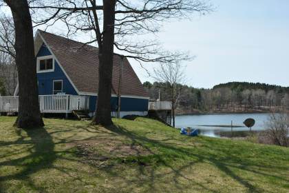 Delightful A-frame cabin with private frontage on Lake View Lake! Natural beauty abounds at this pure Michigan location with gorgeous sunsets, wildlife viewing, and sunny western exposure all centered around a charming rustic lake. The interior is spread out over 3 levels including; a loft which serves as bedroom or office; main floor w/ stone fireplace and sliders onto elevated deck, primary bedroom, laundry, and efficient kitchen; and lower level w/woodstove, bedroom, and additional living/storage/workspace. Property has plenty of room for a garage and existing storage sheds are perfect to store kayaks, fishing poles, and snow shoes. The location is quiet and rural yet just outside the Village of Lake Ann and only a short drive to Traverse City to the east or Lake Michigan to the west. This is an ideal property for an Up North getaway or year round residence.