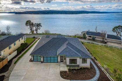Serenity by the Sea. Unique 100ft of Beachfront, Low-Bank, Masterpiece on 5 acres, with owned tidelands. Views of Protection Island, Mt. Baker, and the San Juans. Step onto the sun kissed beach and feel the cool sea breeze just a few steps from your back door. Relax and unwind on the beach, with only 14 houses on the beachfront. Launch a kayak, catch crabs, go clamming, or take a walk on the beach. The current owners have done a remodel to rival a four star hotel by partnering with a professional interior designer. They pulled from local artisans to stay true to the waterfront elegance. "We wanted it to feel like a Four Seasons residence when we moved in" says the current owner. They continued to say "that we wanted to capture the Mountains to Sea whichever way we looked out." The ultimate experience, the perfect blend of aesthetics & function. Seamless flow from the vast dining, kitchen and living areas open to the expansive deck ideal for entertaining. Ocean and beach views on every level of this home. Meticulously maintained with custom finishing’s, 12” crown molding, custom railing, handblown and hammered glass, custom tile, pride of ownership throughout the home. Soaring ceilings, white walls, and hardwood floor add a breath-taking tone to the all-encompassing views. Single-level living with primary suite on main, with an attached 5-piece luxury bath. The Entertainers' dream kitchen is complete with a sub-zero fridge, Wolf micro-drawer, Wolf cooktop, Brazilian Cherry hardwoods, double Miele sinks, and custom cabinets by June Bay. The heart of the home is the unique one-of-a-kind kitchen, a combination of both contemporary and traditional features with 15"crown molding. Two additional bedrooms located on the upper level of the home. Work form home possibilities as endless with an office/den on the upper-level, and a large craft room. This breathtaking resort-style home is sure to impress the most discerning buyer.