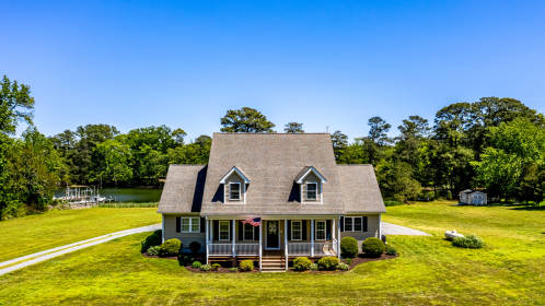 "EVERGREENS" This property has been in the same family since 1904, so this opportunity only comes once in a lifetime. The owners constructed this custom built "move-in-ready" home in 2004. This home truly has it all and is the perfect size for everyone. The large open floor plan offers a spacious living area with cathedral ceilings, and cozy gas fireplace, that leads to an outside back deck, over looking the water. Beautiful Brazilian cherry hardwood floors throughout the down stairs. Nice size kitchen with custom cabinets, formal dining room, and a luxury wet bar. The downstairs master suite features a good size bedroom area, and large garden tub. The private 3.2 acre lot has a deep water pier(5+), a 10,000 lb boat lift, water & electric, and vinyl bulkhead. There are 2 storage sheds, and plenty room for more. The location is perfect for boating. There are several seafood restaurants only minutes away by water, and a full service marina within eyesight.